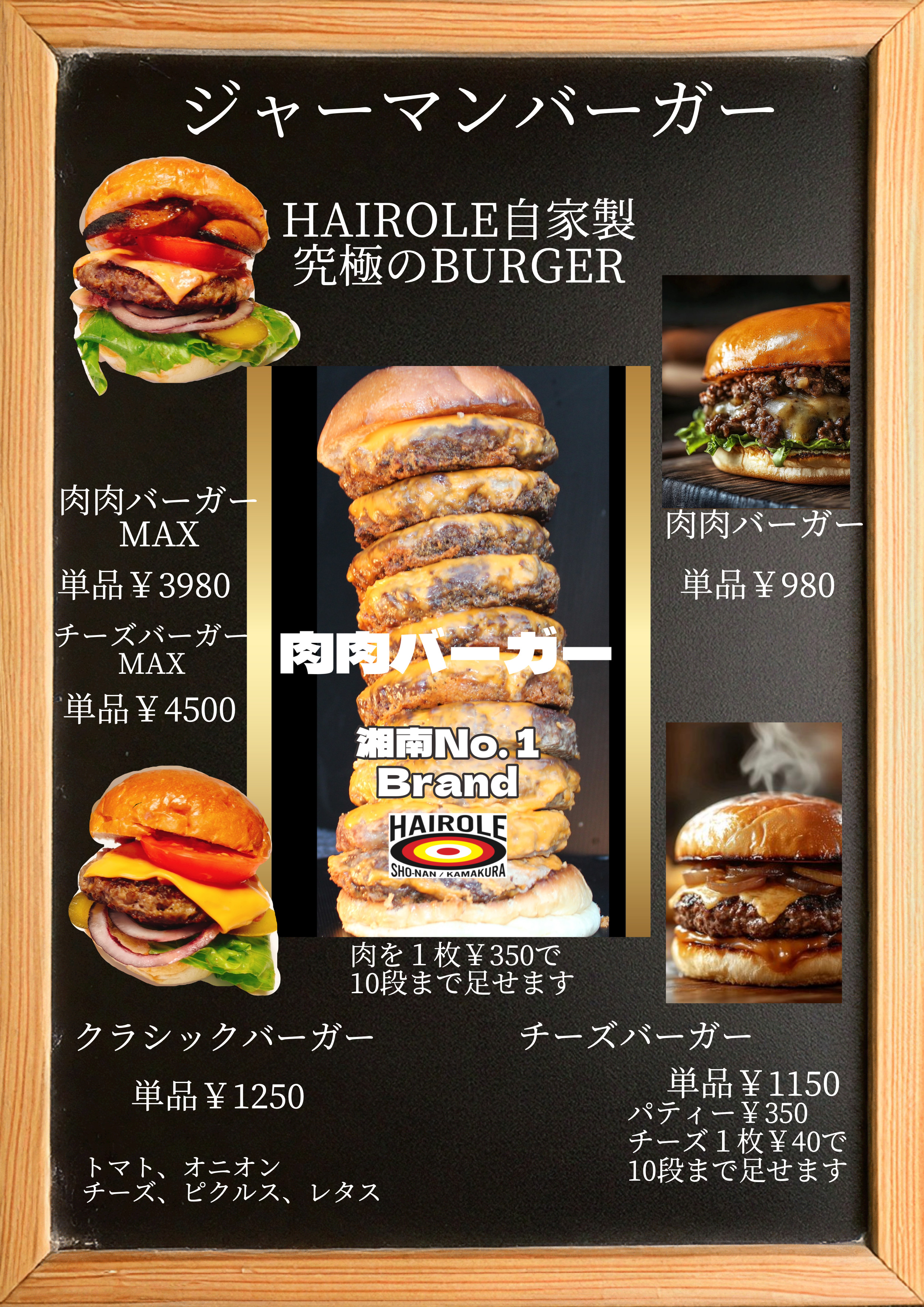 追加でパティー1枚につき¥350で10枚まで重ねられます!